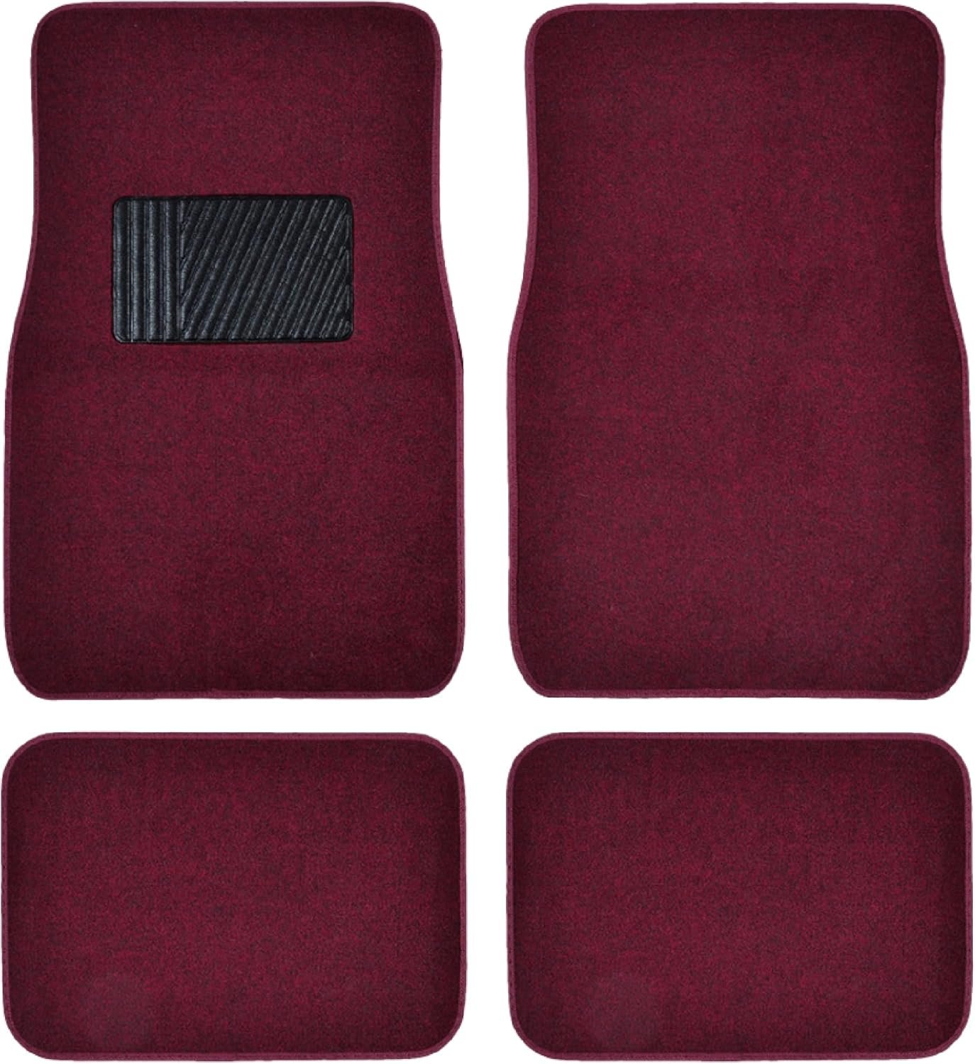 Premium Burgundy Carpet Floor Mats for Cars – Universal Fit Interior 4-Piece Car Mats Full Set with Vinyl Heel Pad Protector – Cute Car Accessories Interior Floor Covers for SUVs & Trucks